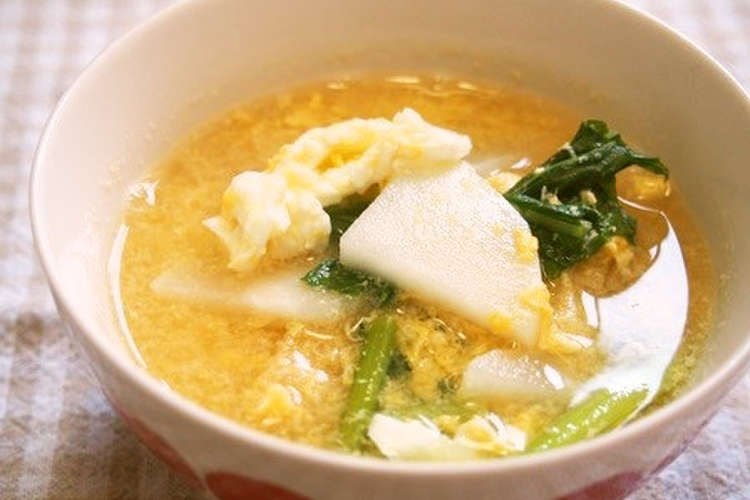 高野豆腐とかぶの葉の卵とじ味噌汁 レシピ 作り方 By すばママキッチン クックパッド