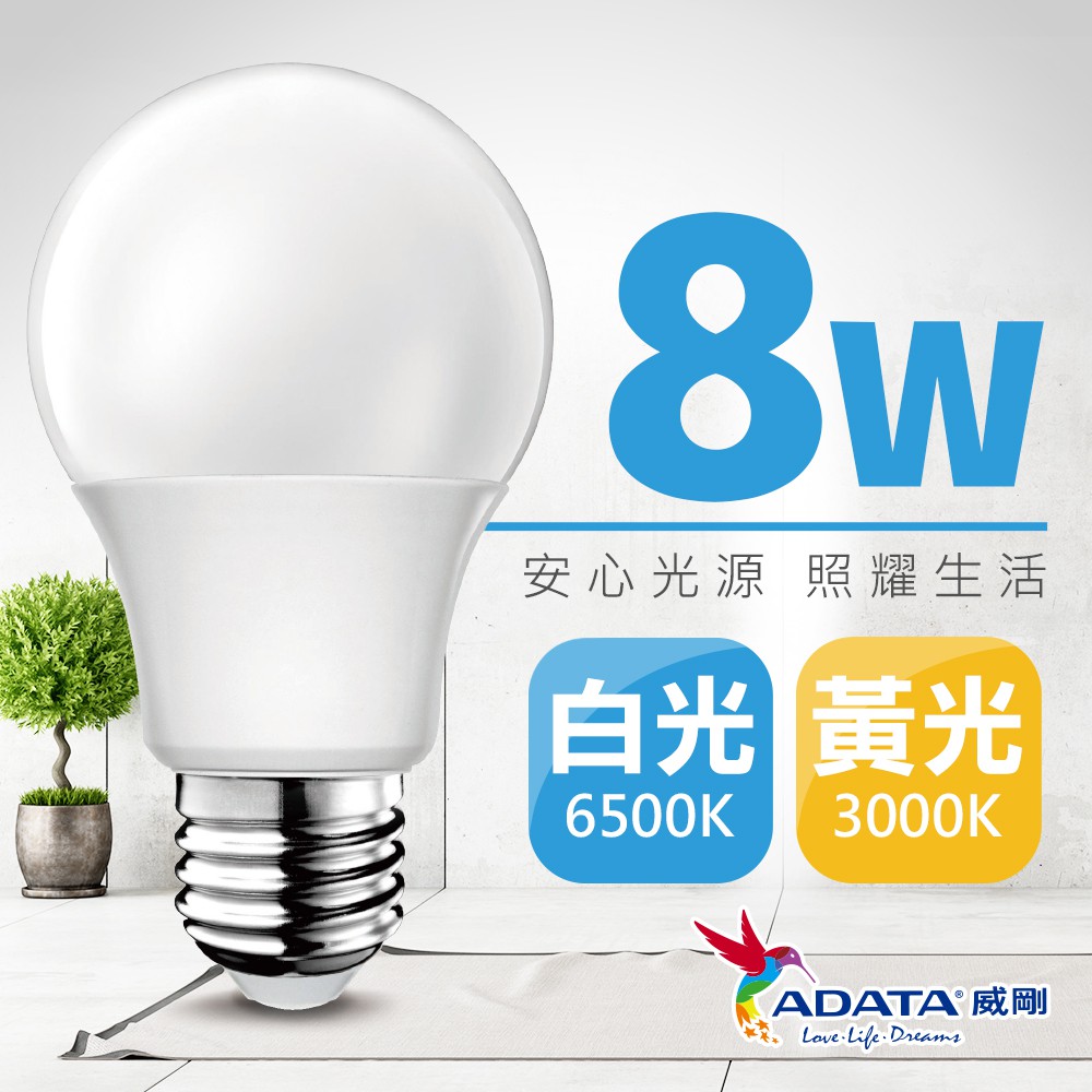 二入組 Adata 威剛8w大角度led球燈泡 白光 Al Bua19c1 8w65c 燦坤線上購物 Line購物
